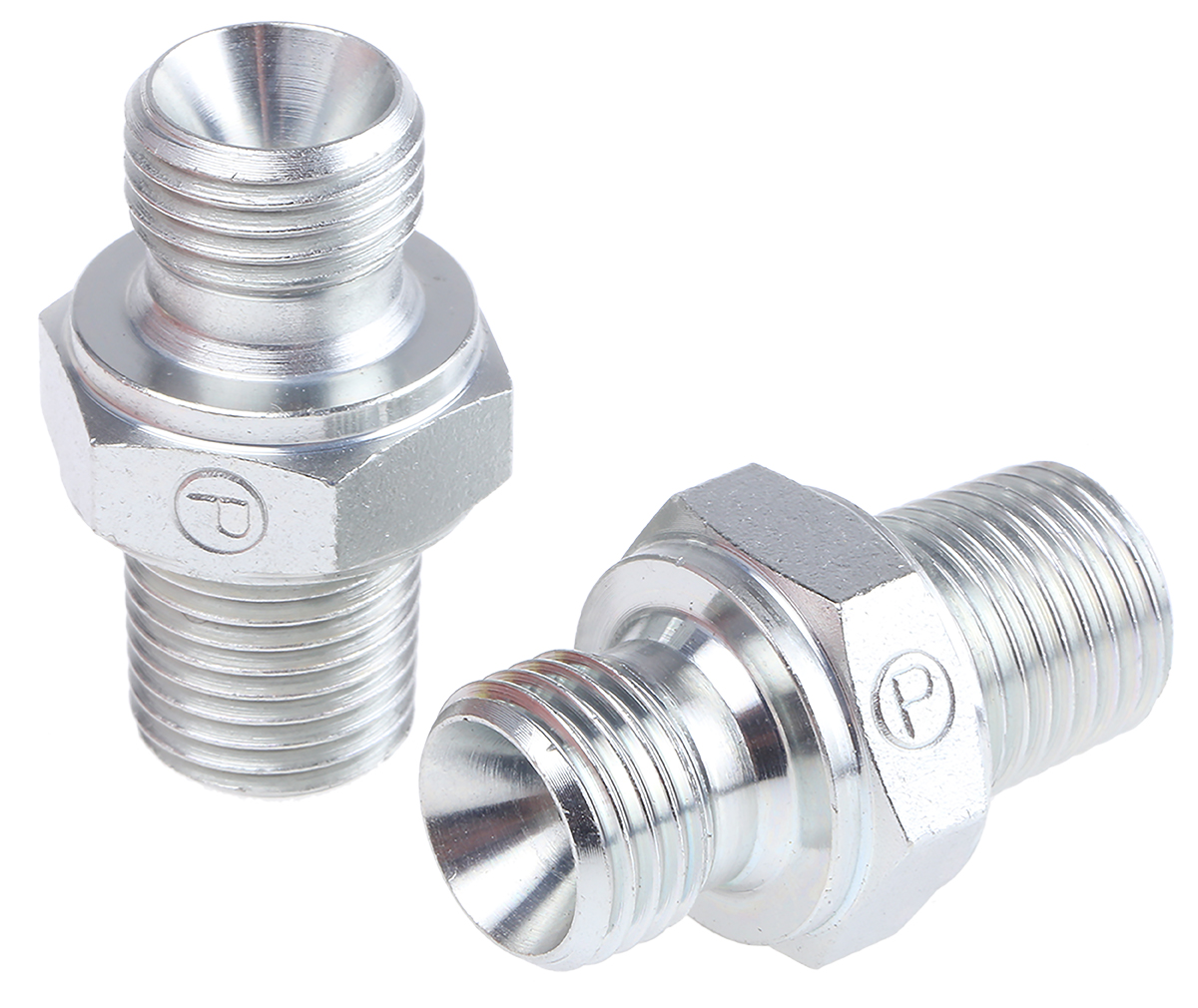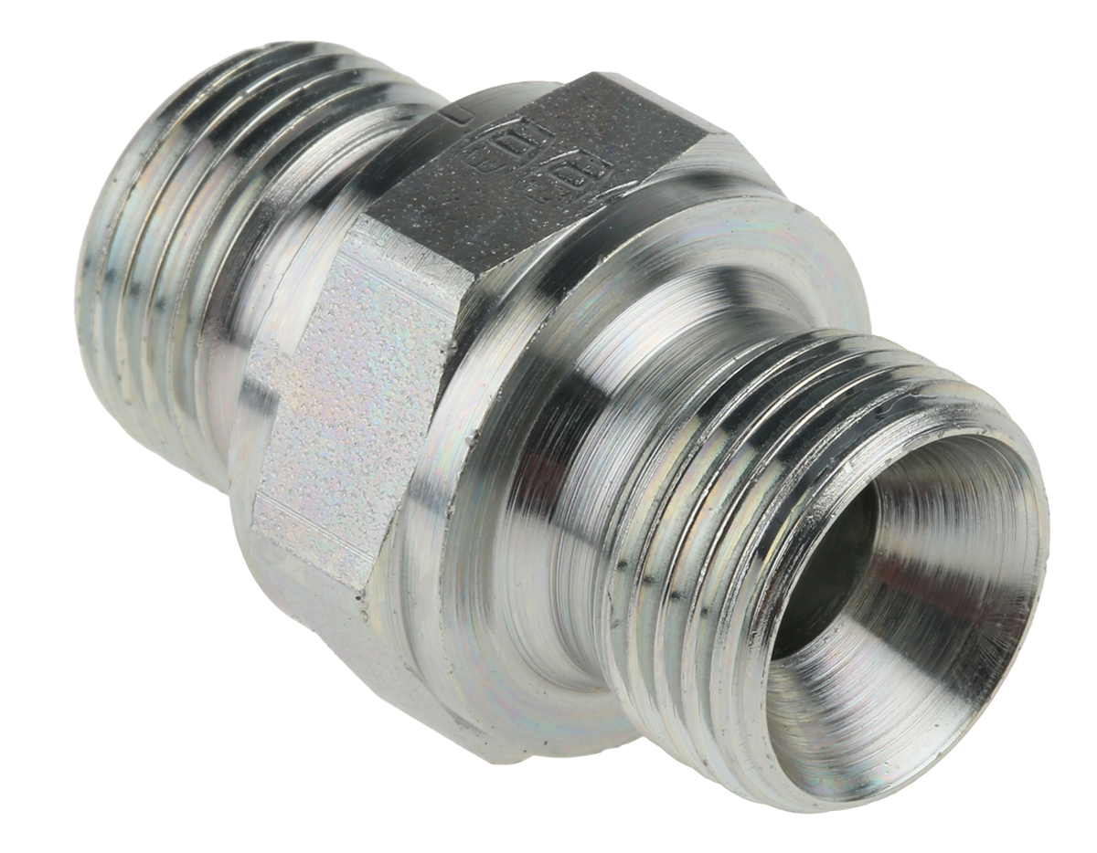 Hydrauliczny adapter gwintowany prosty, Złacze A: BSPP męski, Złacze B: BSPP męski, Stal, 200bar