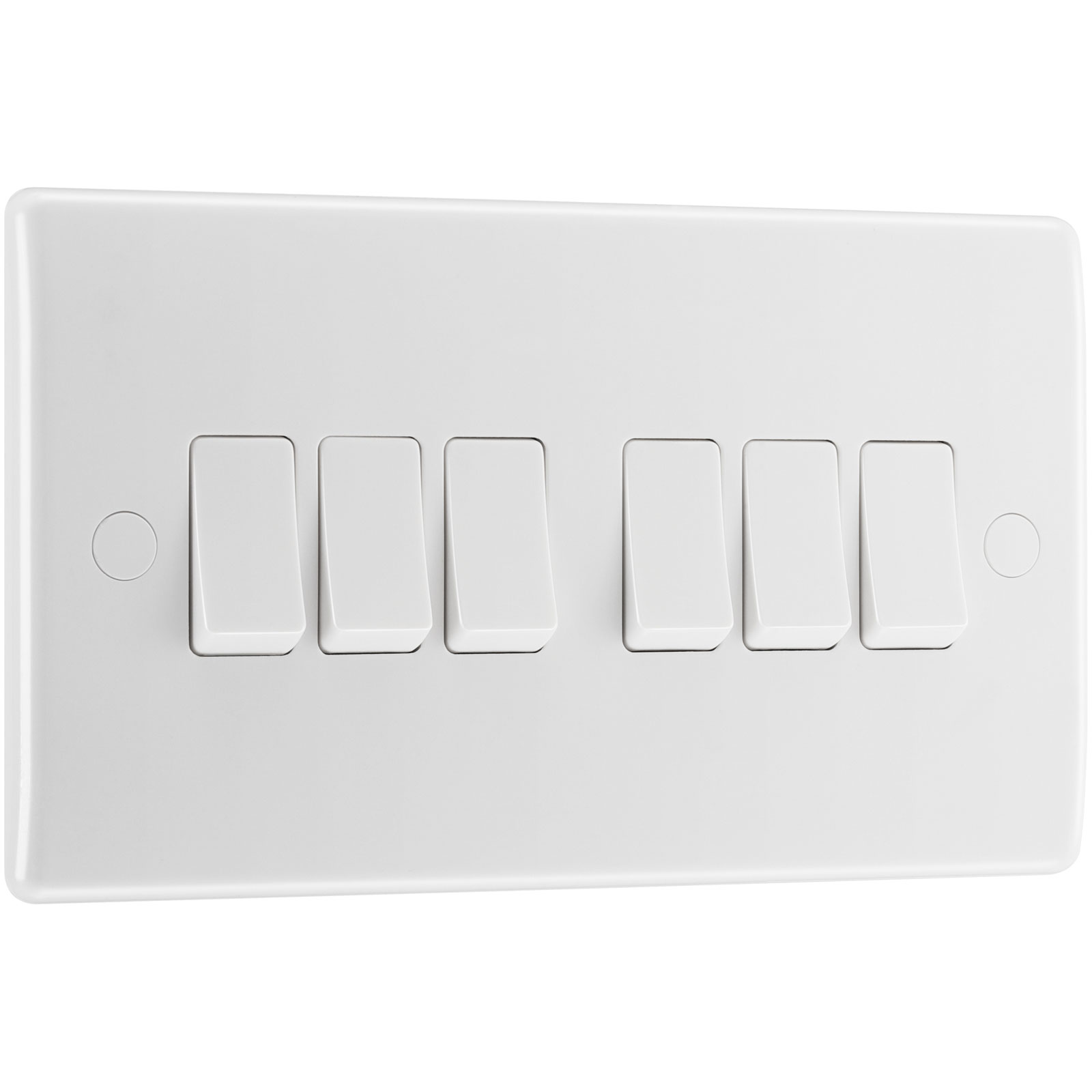 BG 846 White Nexus Moulded Six Gang Switch, 20A 16AX 2 Way