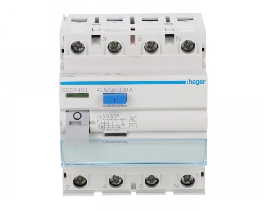 6. CDC440J Wyłącznik różnicowoprądowy 4P 40A/30mA Typ AC Hager 207.87