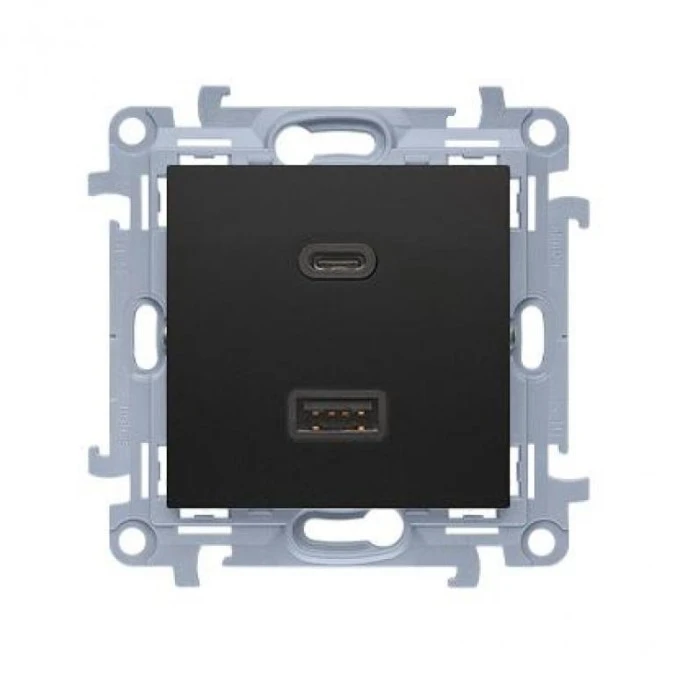 Gniazdo ładowania USB podwójne SIMON 10 czarne matowe USB A + USB C (Quick Charge 30W) Kontakt Simon CEC2CAQ.01/49