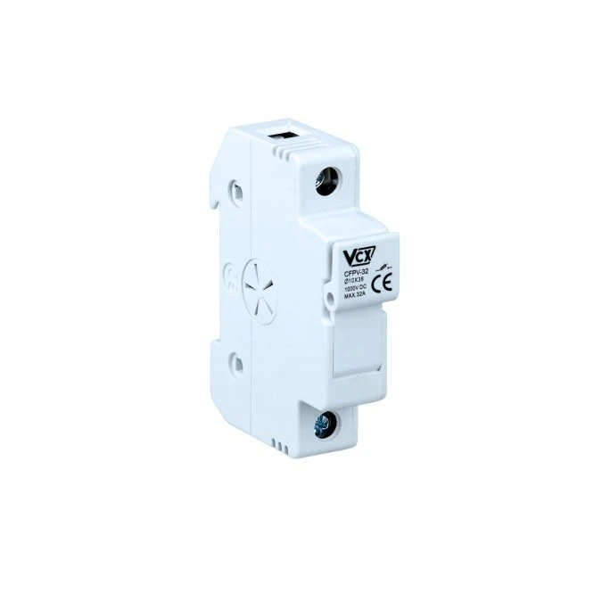 1. Podstawa bezpiecznikowa 32A 1-biegunowa 1P (1000V DC) 1-modułowa na wkładki 10x38mm VCX 8.61
