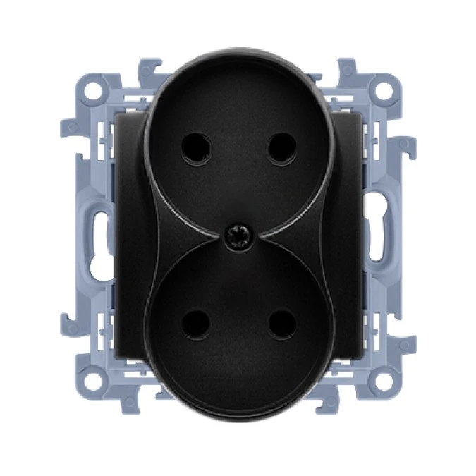 Simon 10 Gniazdo wtyczkowe bez uziemienia podwójne (moduł) 16A, 250V, zaciski śrubowe czarny mat CG2M.01/49