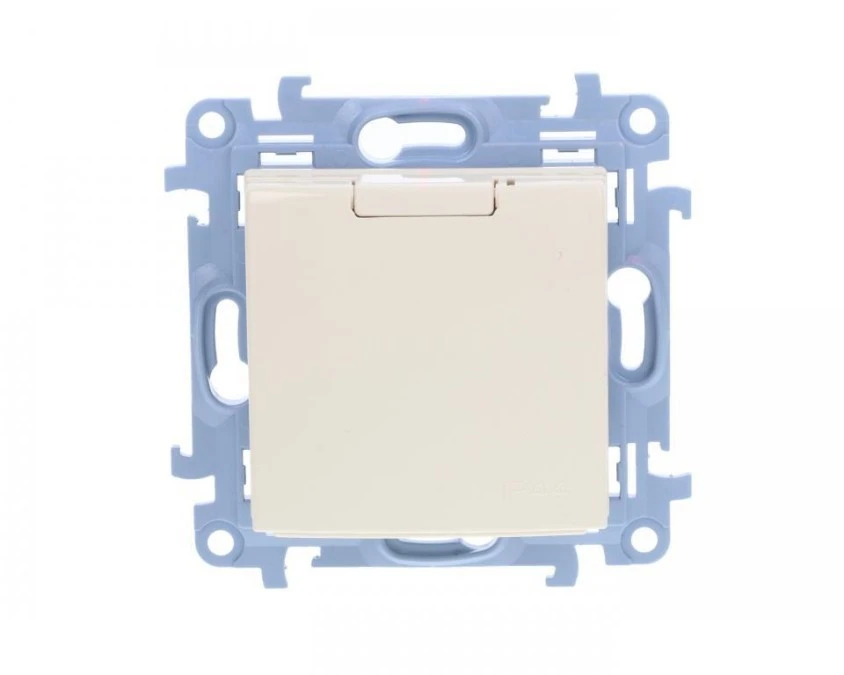 9. Simon 10 Gniazdo pojedyncze do wersji IP44 bez uszczelki klapka transparentna 16A, 250V krem CGZ1BU.01/41A 11.69