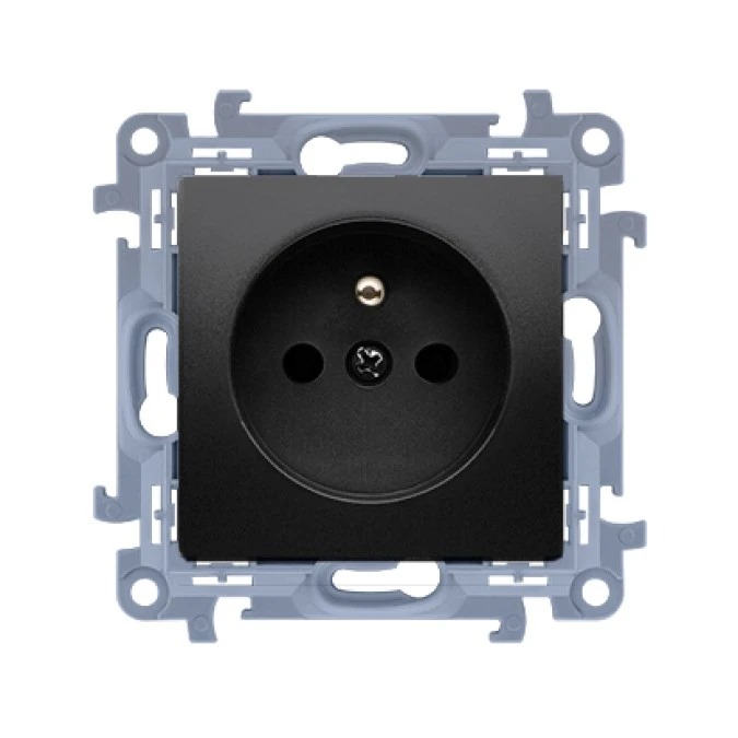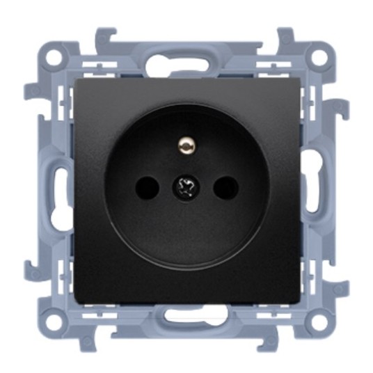 SIMON 10 Gniazdo pojedyncze z uziemieniem z przesłonami torów prądowych (moduł) 16A 250V szybkozłącza czarny mat CGZ1CZ.01/49 KO