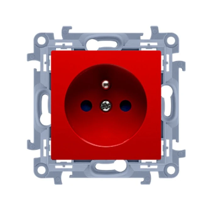 Simon 10 Gniazdo pojedyncze z uziemieniem z przesłonami torów prądowych czerwony 16A, szybkozłącza, CGZ1CZ.01/22