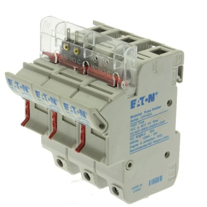 Podstawa bezpiecznikowa wkładka cylindryczna 14x51 3p 50A 690 Vac wskaźnik 3 Pole 14x51 MFH Neon Indicator CH143DIU EATON