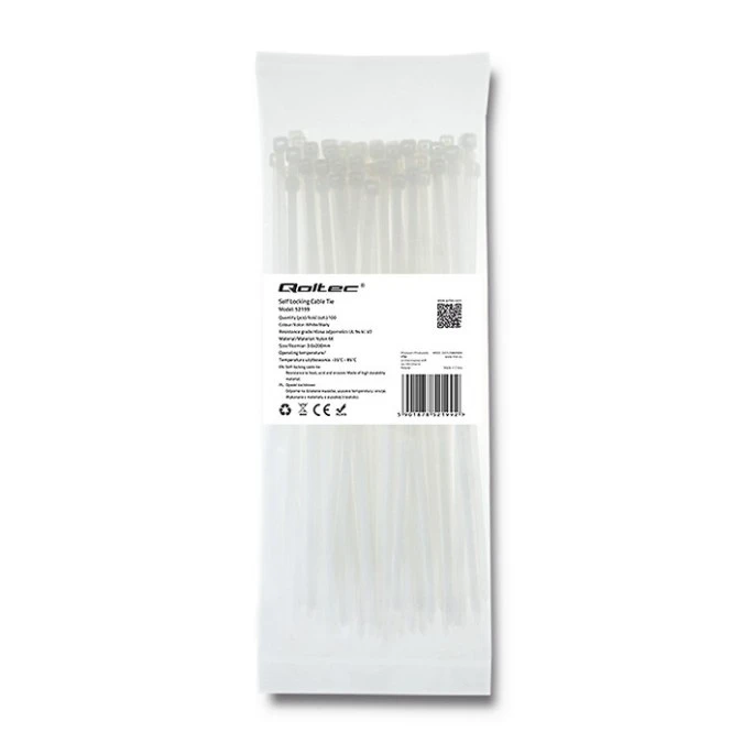 Qoltec Opaski zaciskowe Trytki kablowe 2.5*200mm 100 szt. Nylon66 UV Białe