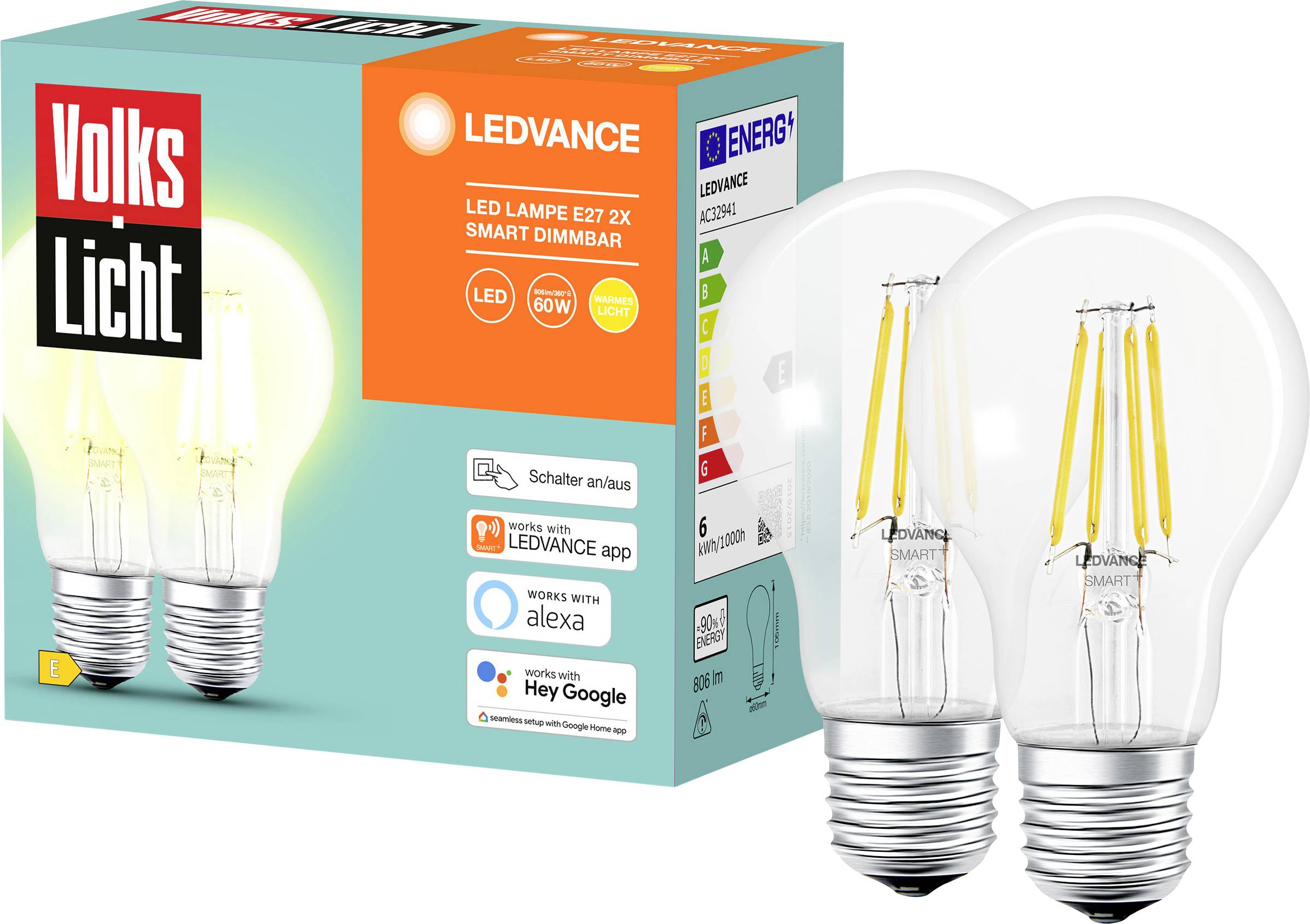 12. LEDVANCE SMART+ EEK: E (A - G) AC32941 - 2er SMART+ BT FILAMENT CLASSIC DIMMABLE CLA60 E-27 6 W ciepła biel 52.99