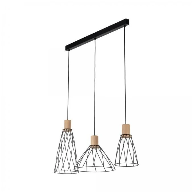 13. Potrójna lampa wisząca na listwie z drucianymi kloszami na GU10 z rodziny MODESTO WOOD 10158 TK Lighting 492.49