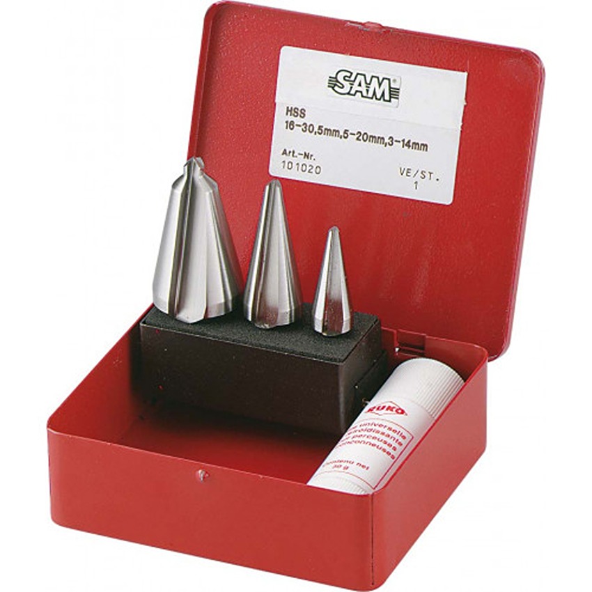 Zestaw trzech wierteł SAM z ogranicznikami i ...