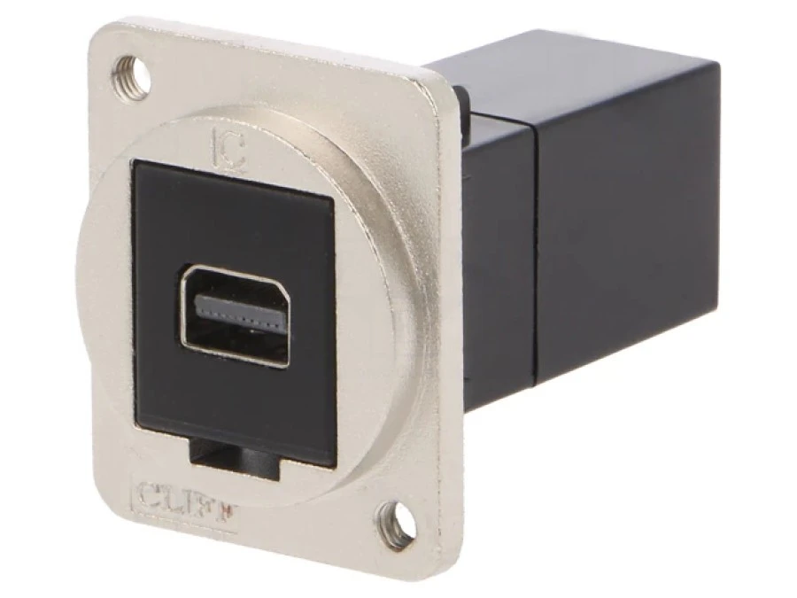 1. Cliff CP30202M3 Mini Displayport feedthrough connector, nickel plated, M3 18.67