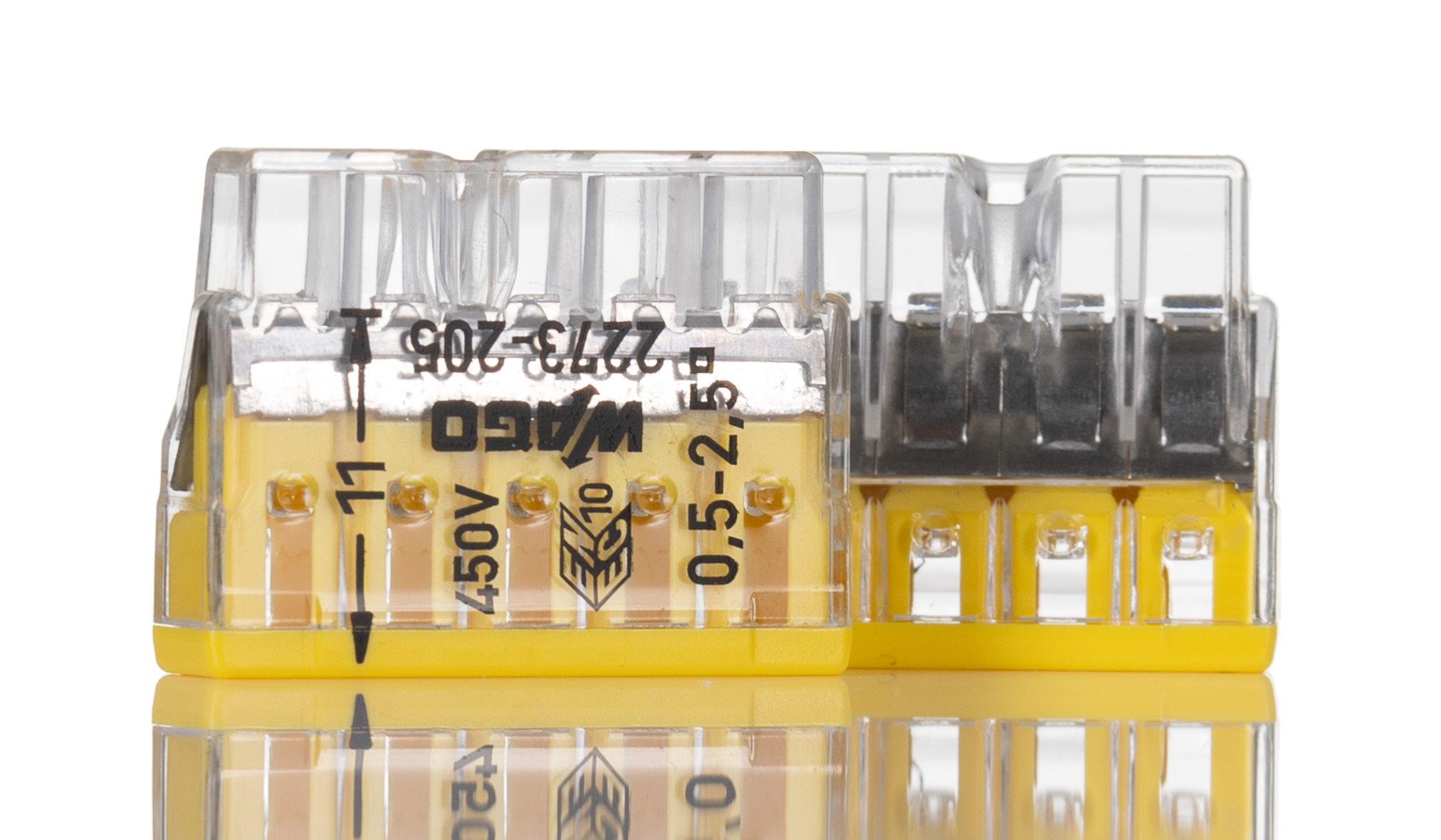 1. Złącze skrzynki przyłączowej 5-żyłowe WAGO rozmiar żyły 20 → 16 AWG Push-In Montaż na kablu 21.55