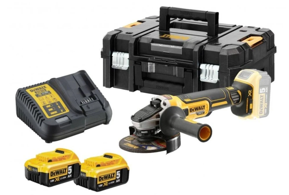 Akumulatorowa szlifierka kątowa 125 mm 18V, 2 x akumulator 5.0Ah + ładowarka DCG405P2-QW