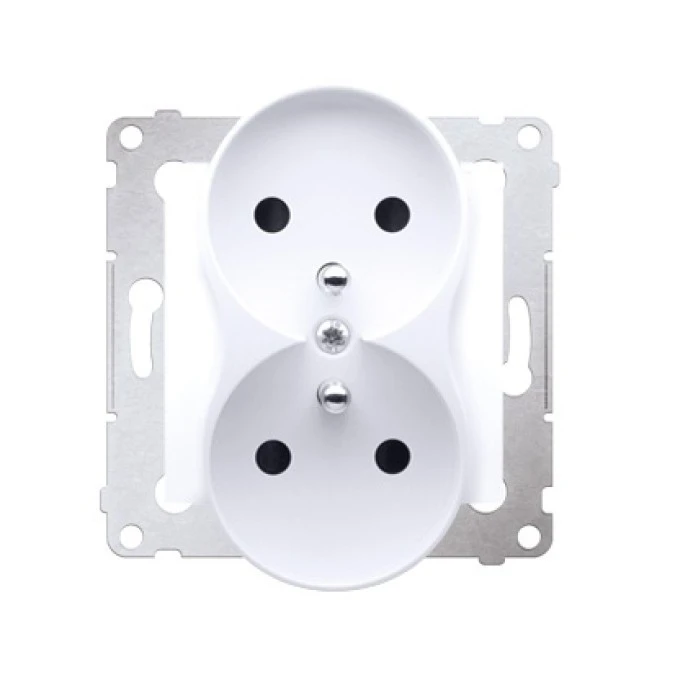 SIMON 54 Gniazdo podwójne z uziemieniem z przesłonami do RAMEK zaciski śrubowe białe DGZ2MZN.01/11 KONTAKT SIMON