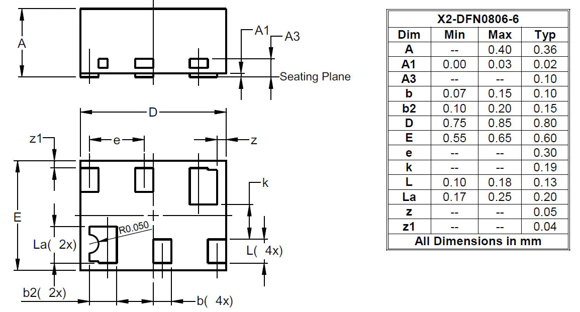 MOSFET N/P-kanałowy-kanałowy 480 mA X2-DFN0806-6 20 V SMD