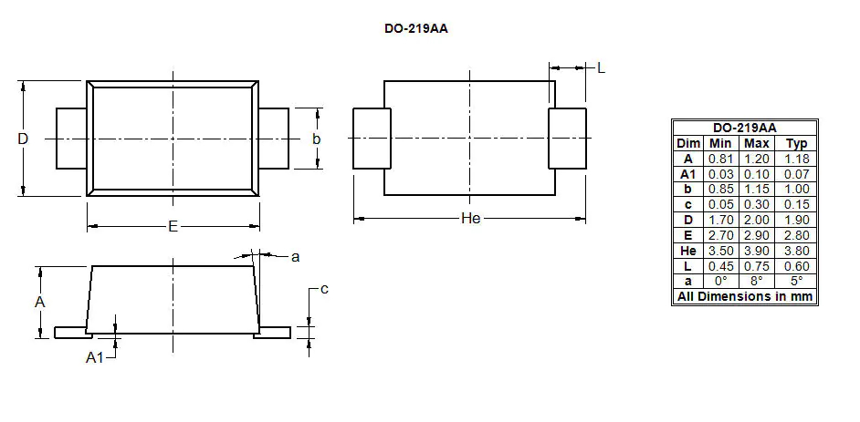 15. Diody prostownicze i diody Schottky'ego DO-219AA Montaż powierzchniowy 200V FES1DE 0.18 x25
