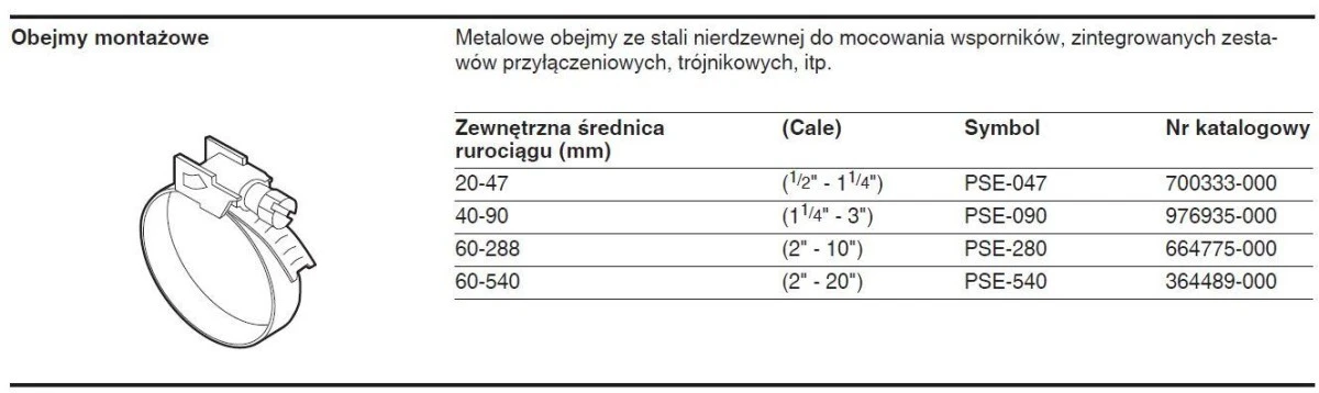 Obejma mocująca Raychem do rurociągów o średnicach DN 16 - DN 33 typu PSE-047