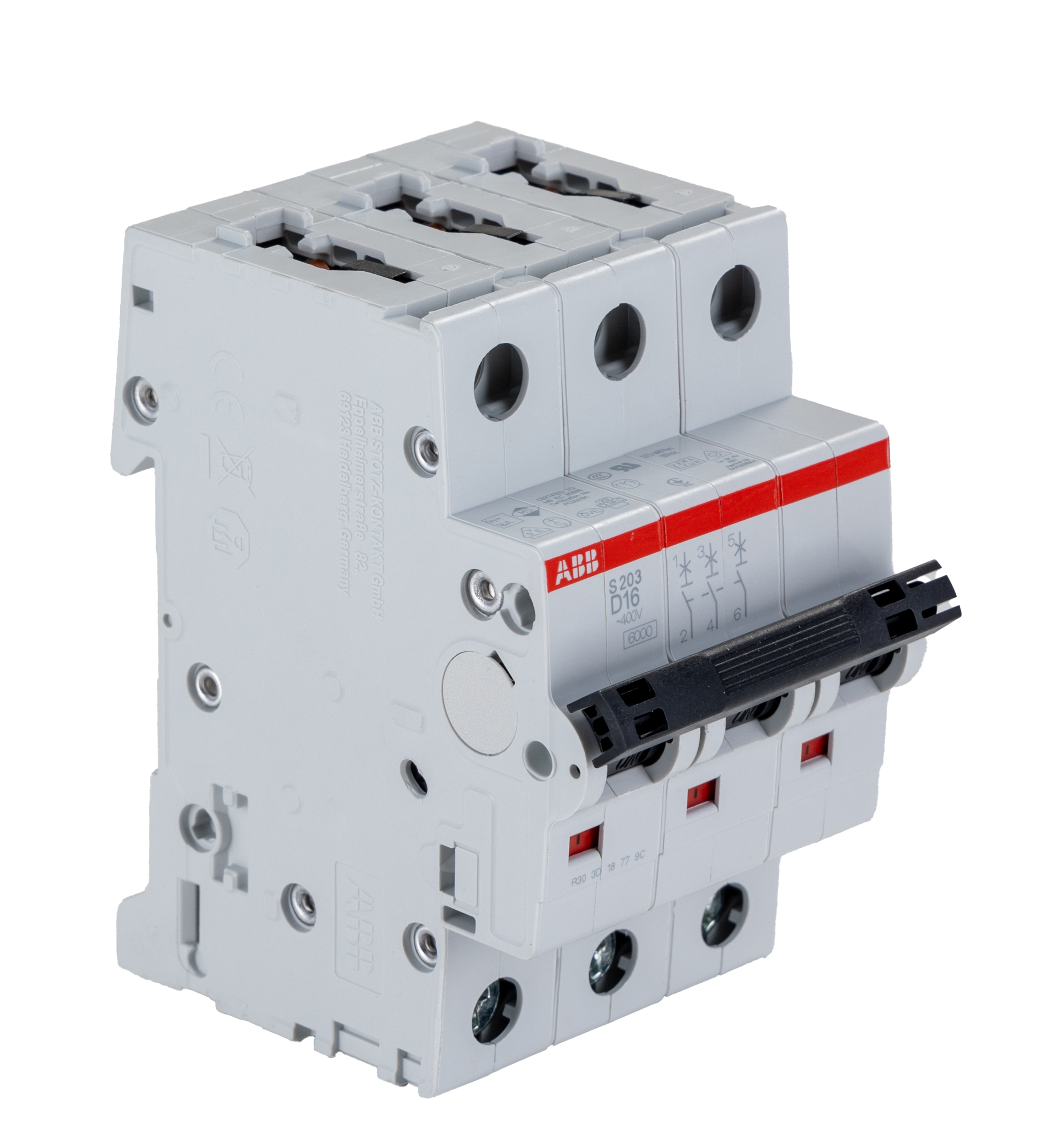 Wyłącznik nadprądowy MCB, Typ D, 3-biegunowy, 16A, 440V, 12V, na szynę DIN, ABB S203-D16, S200