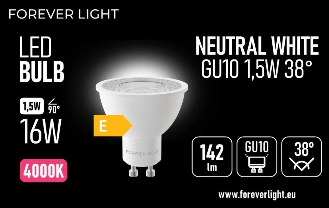 Żarówka LED GU10 38 1.5W 142lm 4000K klasa E Forever Light