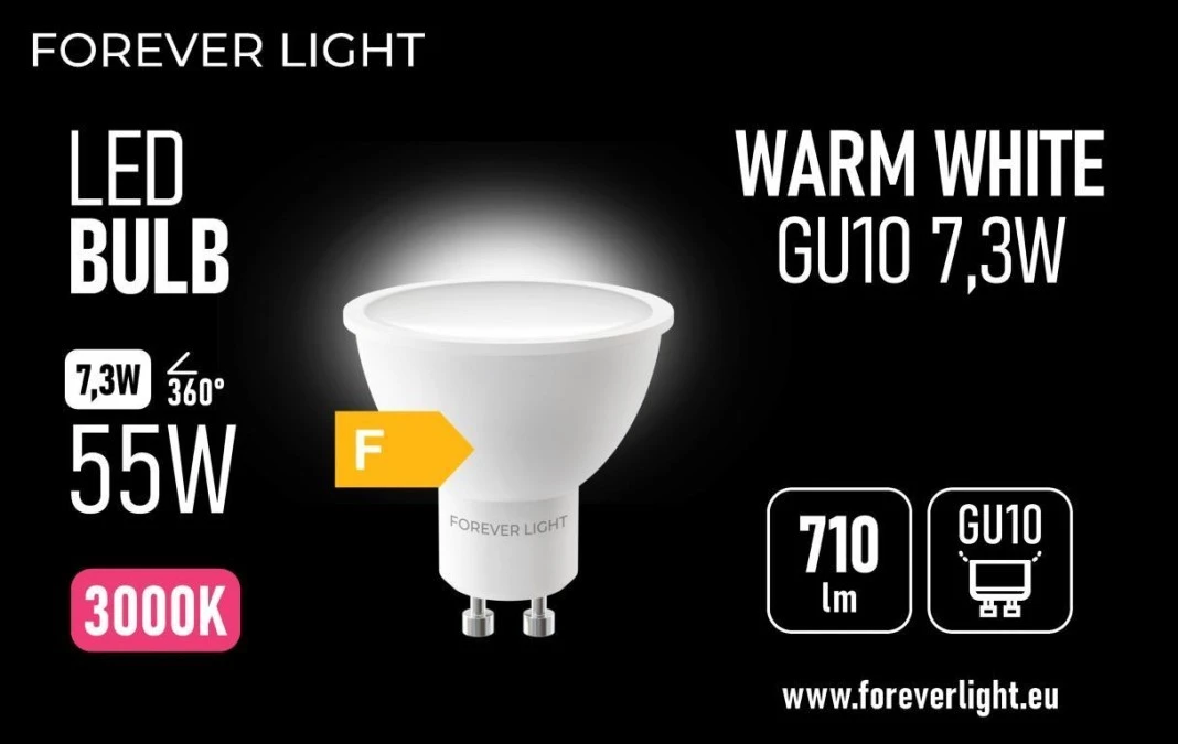 Żarówka LED GU10 7.3W 710lm 3000K klasa F Forever Light