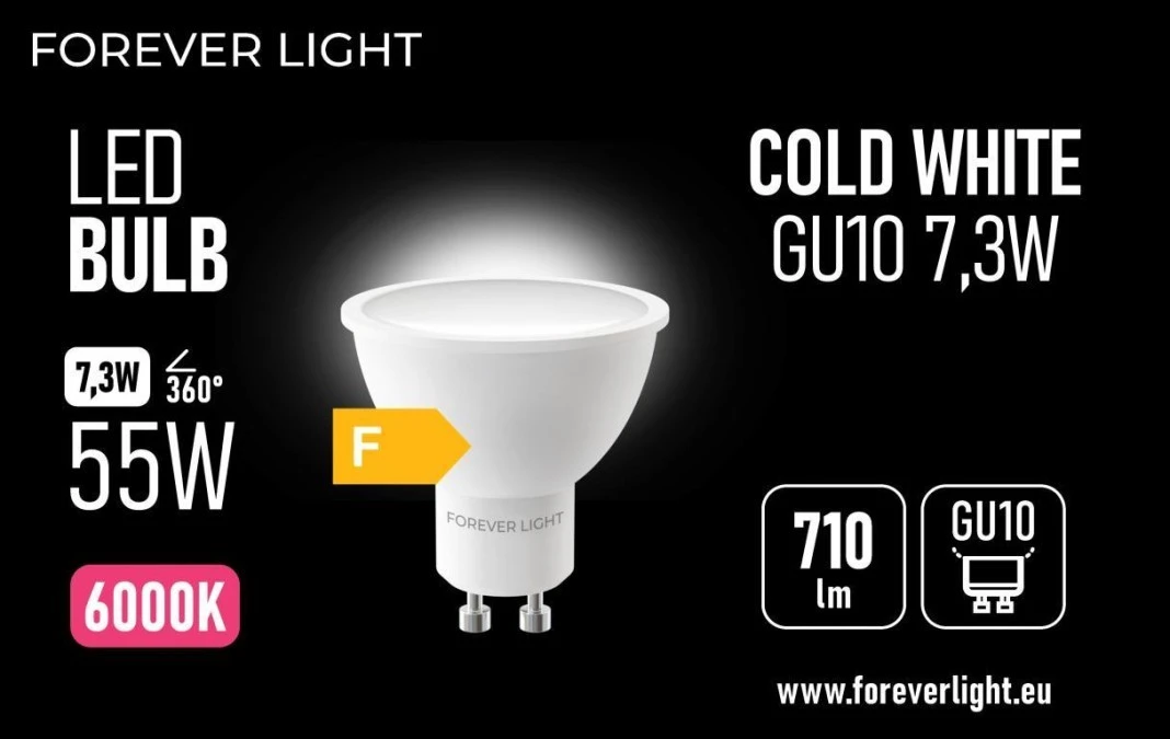 Żarówka LED GU10 7.3W 710lm 6000K klasa F Forever Light
