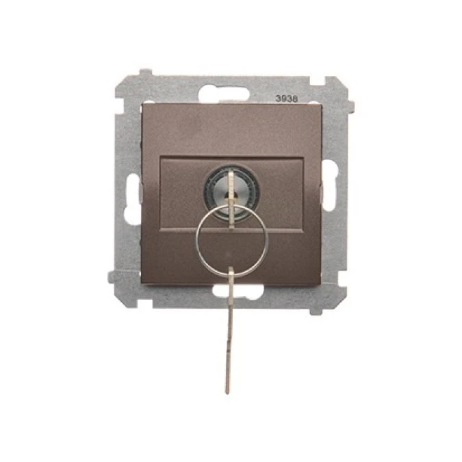 Simon 54 Łącznik na kluczyk chwilowy – przycisk 2 pozycyjny /0-I/ styk N/O 5 A 250 pozycja 0 brąz mat DP1K.01/46
