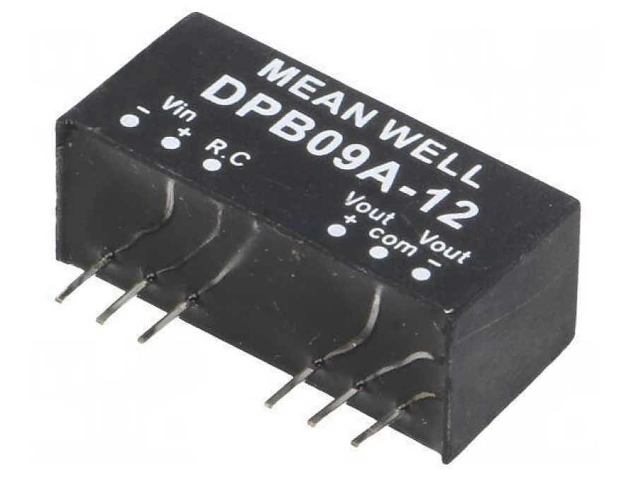 4. Przetwornica regulowana DC/DC DPB09B, Uwe 36V dc, Uwe 18V, Uwy 15 V dc, MEAN WELL 300 mA 9 W -40 °C 90 °C Powierzchnia 90.70