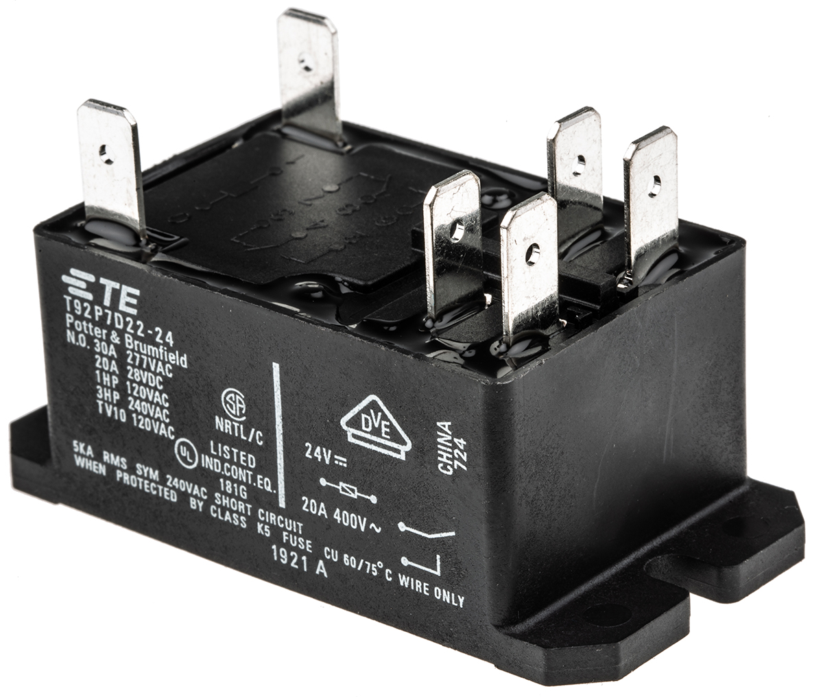 18. Przekaźnik mocy 24V dc DPST TE Connectivity, montaż kołnierzowy 350Ω Szybkie łączenie 116.81