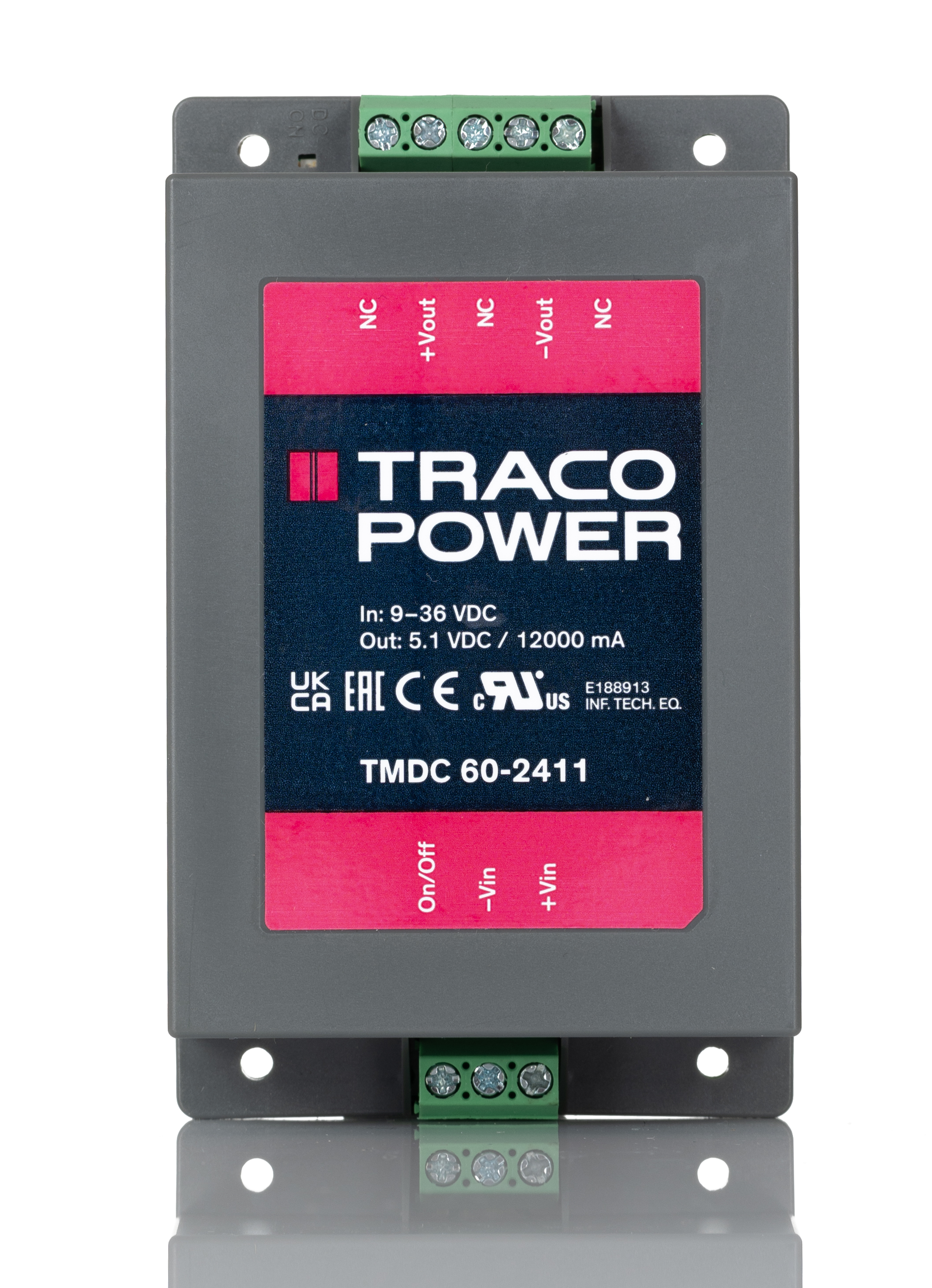 3. Przetwornica DC-DC, 60W, Uwe 9 → 36 V DC, Uwy 5.1V dc, Iwy 12A, TRACOPOWER Nie 461.95