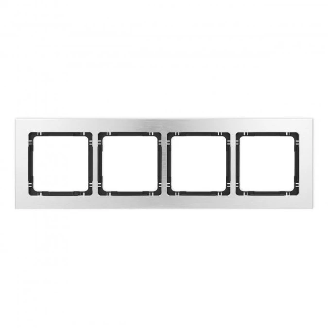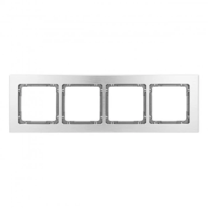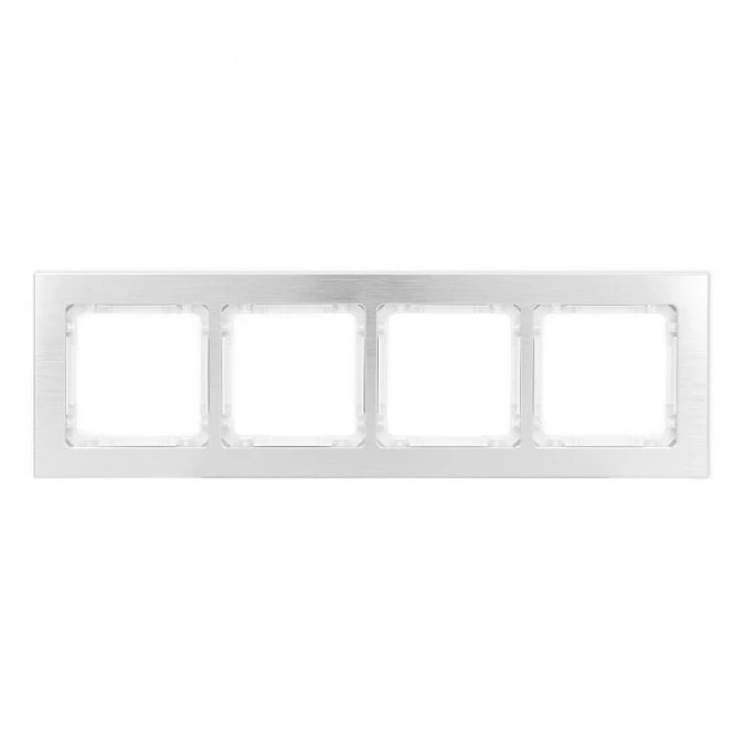 DECO Ramka uniwersalna poczwórna - aluminium szczotkowane (ramka: srebrna spód: biały) 7-0-DRA-4