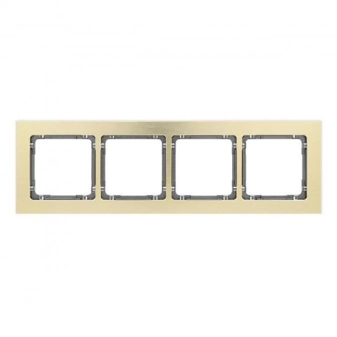 DECO Ramka uniwersalna poczwórna - aluminium szczotkowane (ramka: kolor mosiężny spód: biały) 8-0-DRA-4