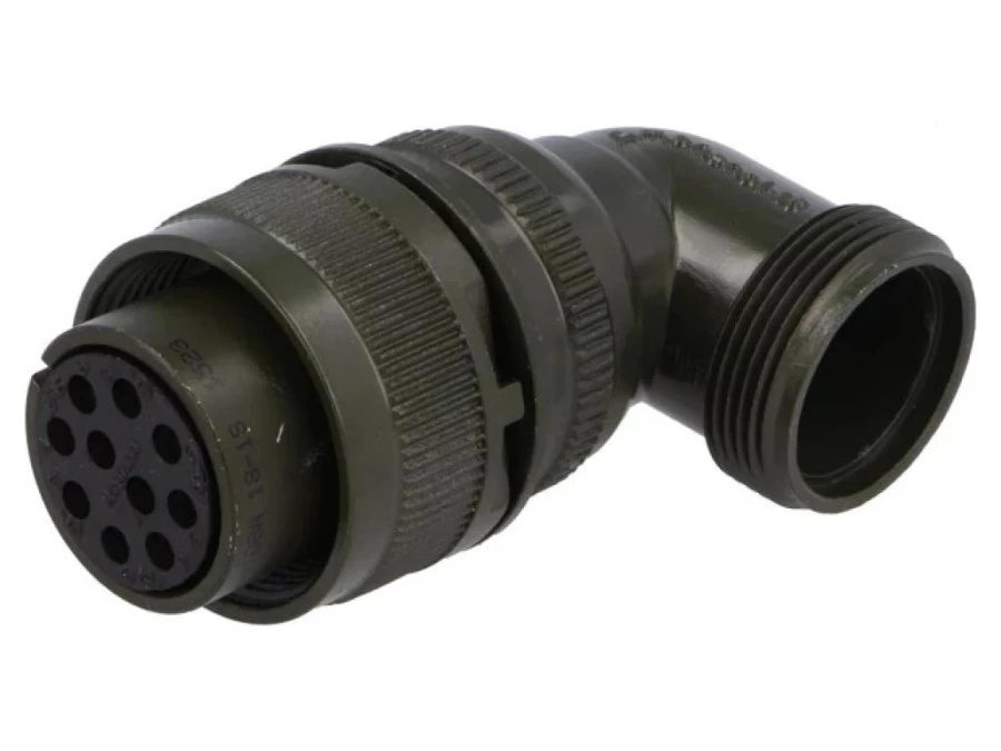 Wtyk żeński kątowy 10pin gwint wew. Obudowa: 18