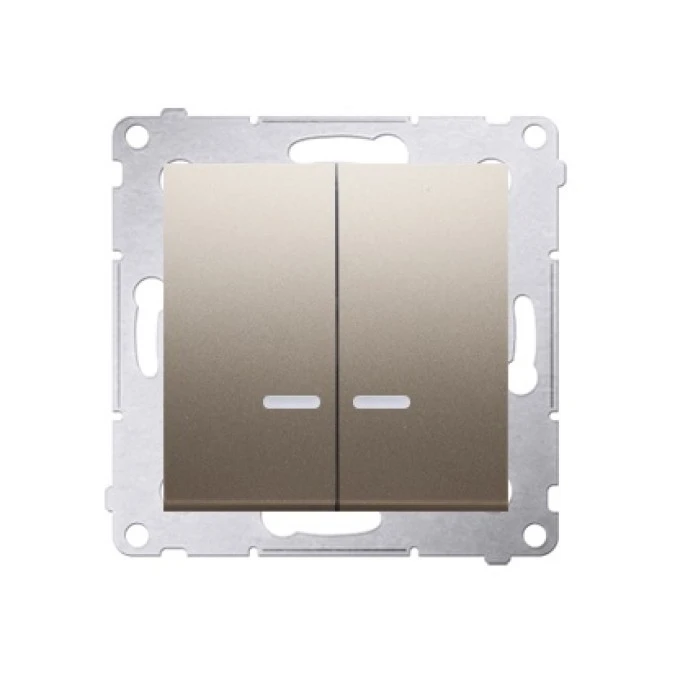 SIMON 54 Wyłącznik podwójny świecznikowy z podświetleniem LED i do wersji IP44 (moduł) zaciski śrubowe złoty mat DU1W DW5ABL.01/