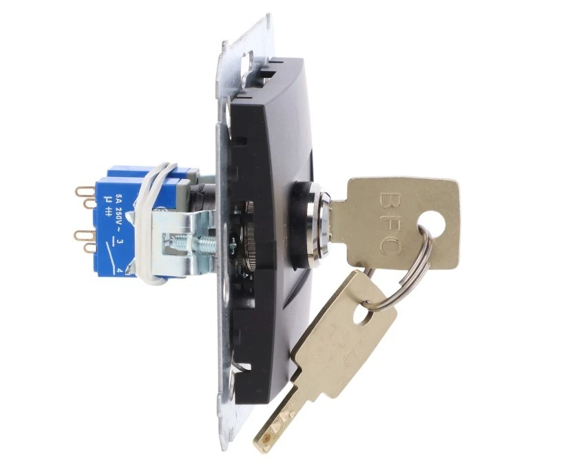 SIMON 54 Wyłącznik na kluczyk żaluzjowy 1-biegunowy 3 pozycyjny „I-0-II" 2 styki N/O 5A 250 możliwość wyjęcia klucza w każdej po