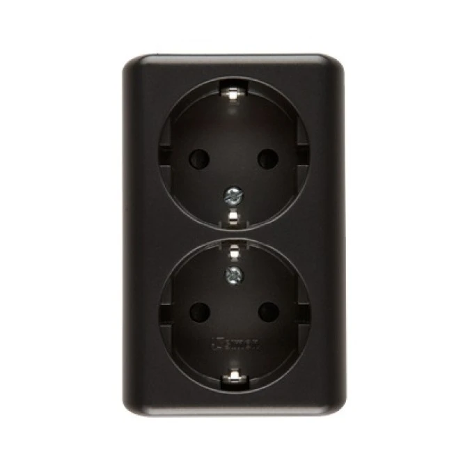 9. Simon 54 Gniazdo podwójne Schuko natynkowe z przesłonami torów prąd. wer. skand. 16A 250V szybkozłącza, czarny mat EGSZ2SNZ/49 54.88