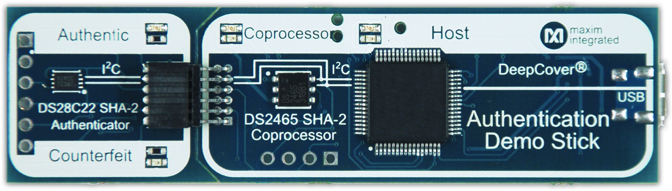 Authentication Demo Stick Using the DS28C22 authenticator and DS2465 coprocessor