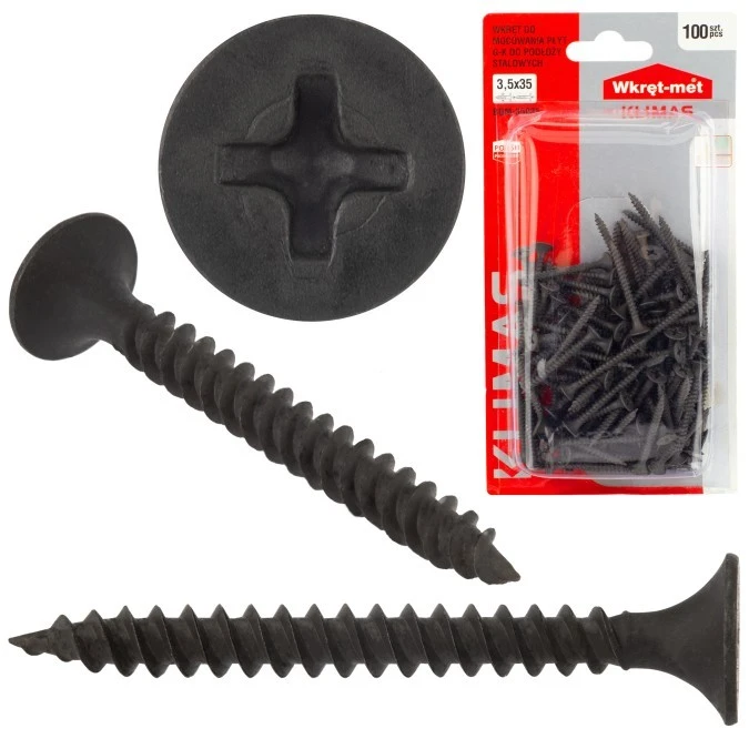5. Wkręty fosfatowane 3,5x35 mm do mocowania płyt gipsowo-kartonowych do podłoża stalowego KLIMAS 100szt 9.99