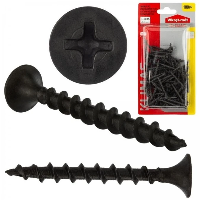 7. Wkręty fosfatowane 3,5x35 mm do mocowania płyt gipsowo-kartonowych do drewna KLIMAS 100szt 10.95