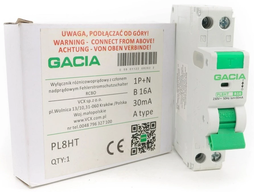 Wyłącznik różnicowoprądowy z członem nadprądowym 1P 16A B 30mA typ A