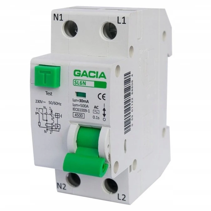 6. Wyłącznik różnicowoprądowy z członem nadprądowym 1P+N 16A C 30mA typ AC 58.52