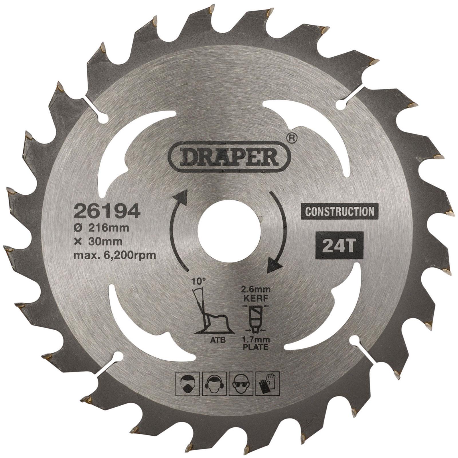 Draper 26194 TCT Construction Circular Saw Blade, 216 x 30mm, 24T