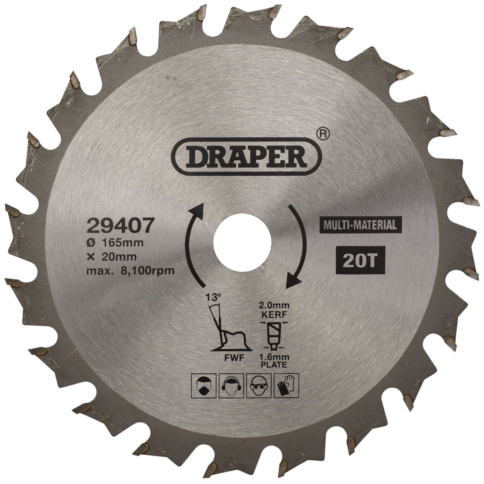 Draper 29407 TCT Multi-Purpose Circular Saw Blade, 165 x 20mm, 20T