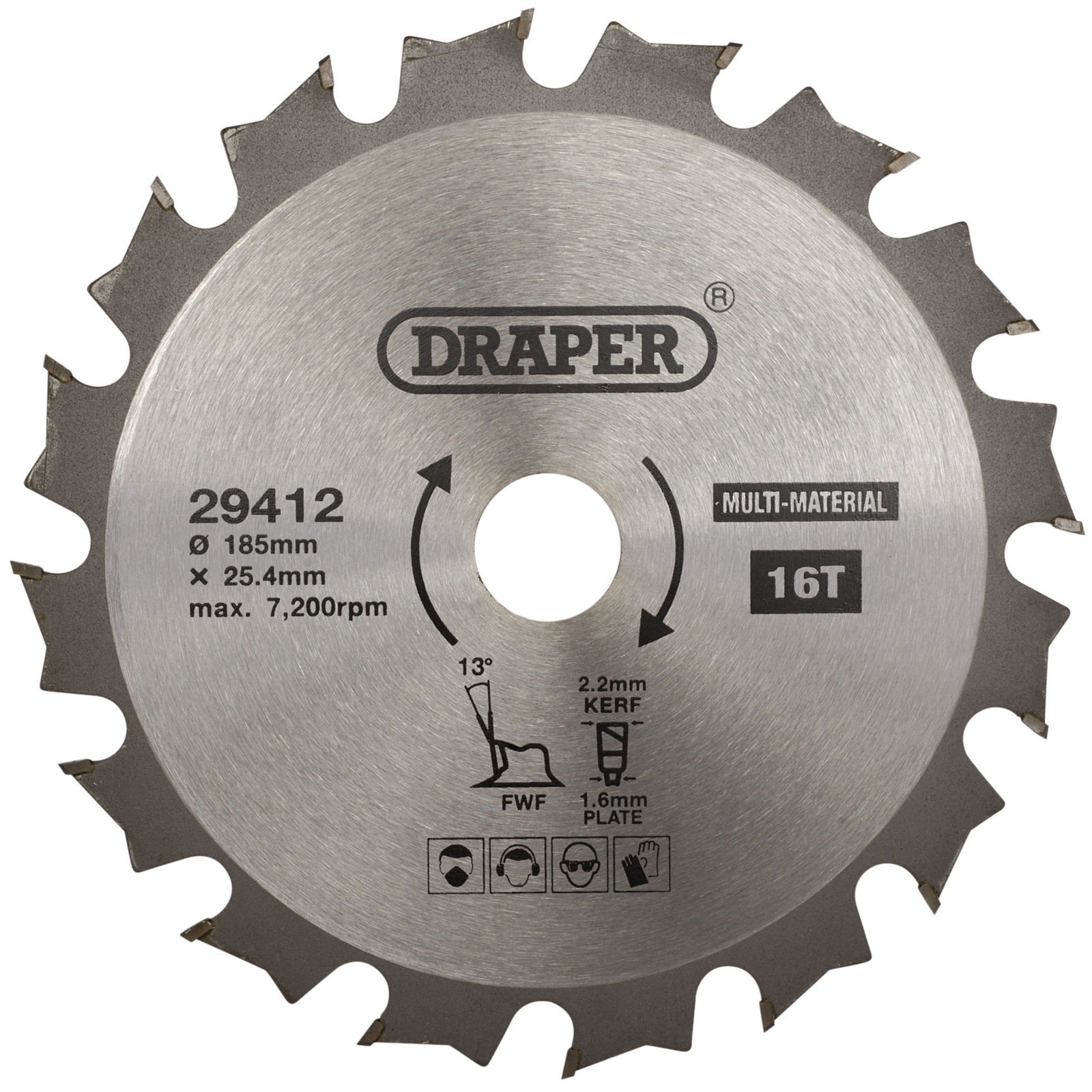 Draper 29412 TCT Multi-Purpose Circular Saw Blade, 185 x 25.4mm, 16T