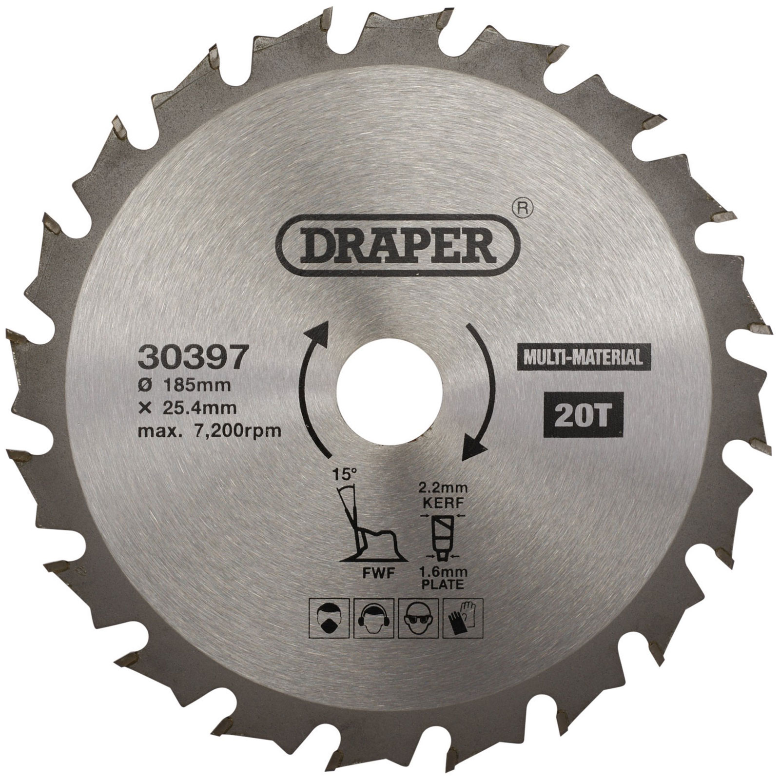 Draper 30397 TCT Multi-Purpose Circular Saw Blade, 185 x 25.4mm, 20T