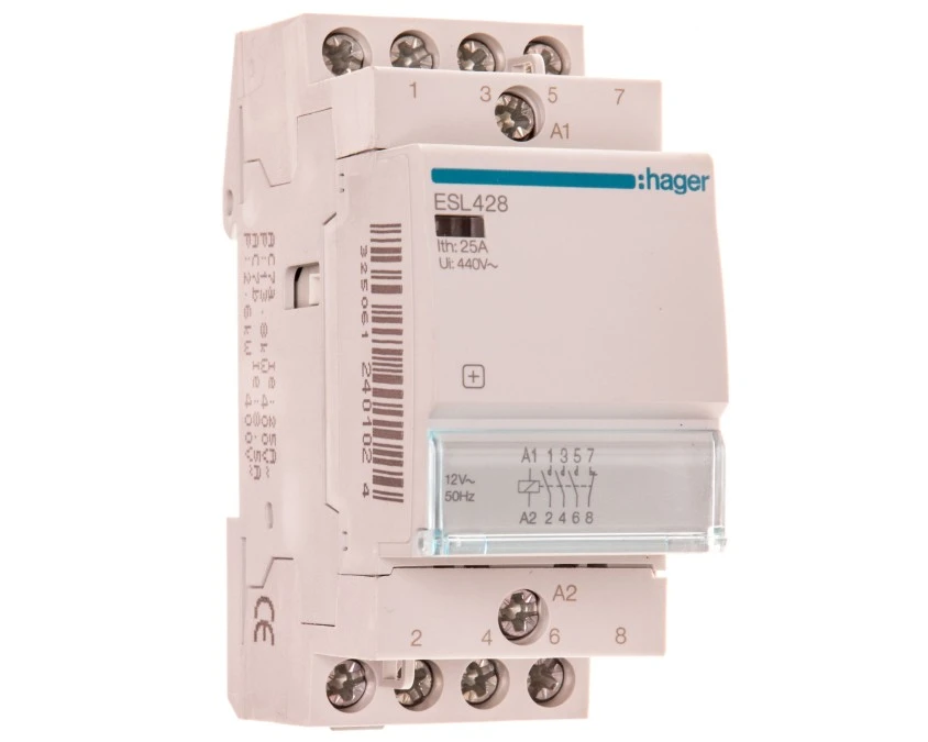 Stycznik cichy 12V DC 3NO+1NC 25A AC-7a/b ESL428SDC HAGER