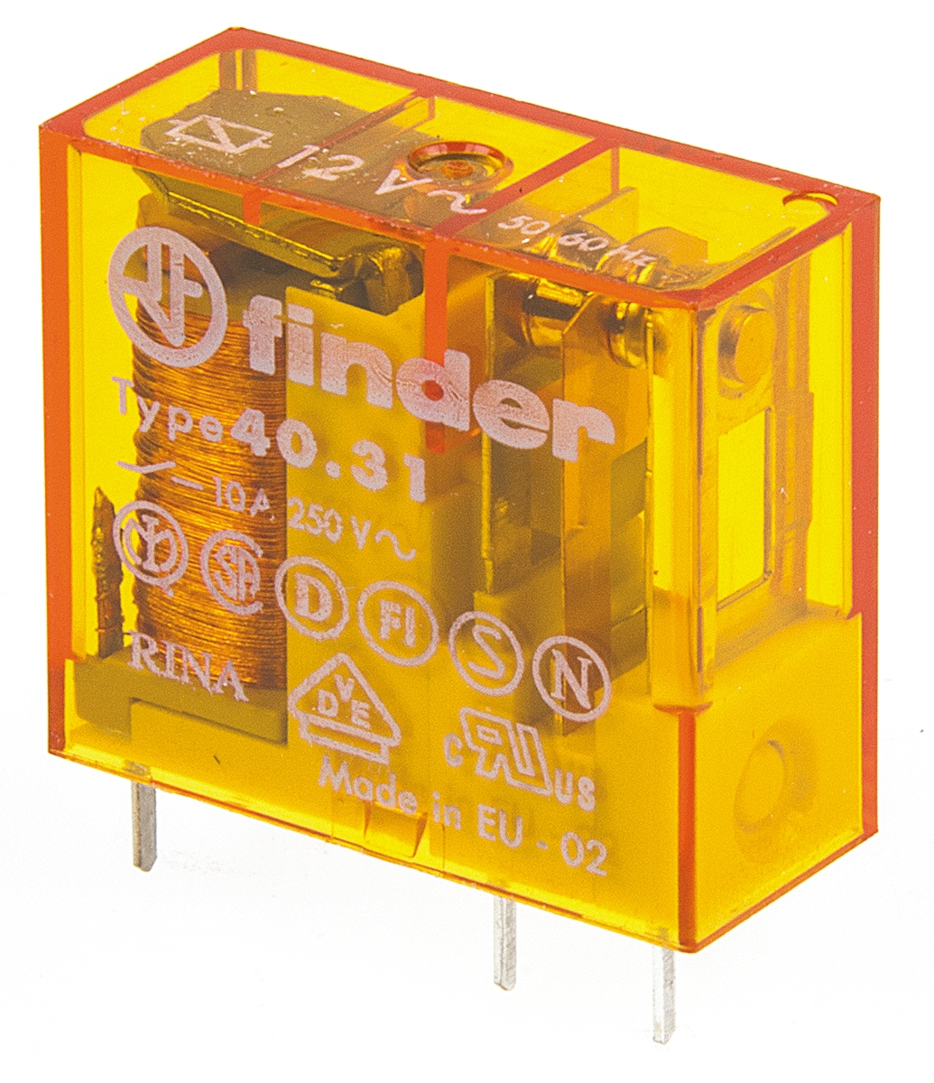 11. Przekaźnik mocy 12V ac SPDT Finder 1.2W, montaż PCB 80Ω Otwór przezierny 41.43
