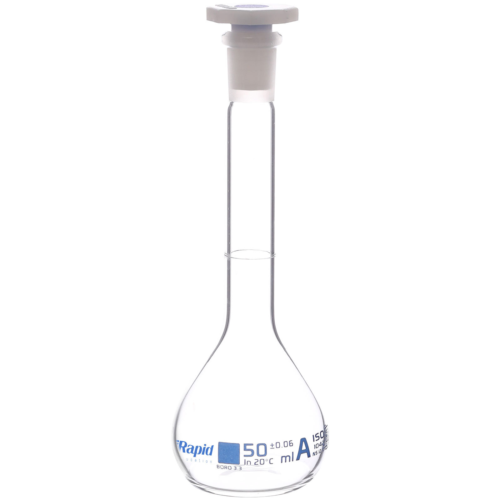 Rapid EGL0446D Volumetric Flask with PE Stopper, Class-A, 50 ml pack of 2