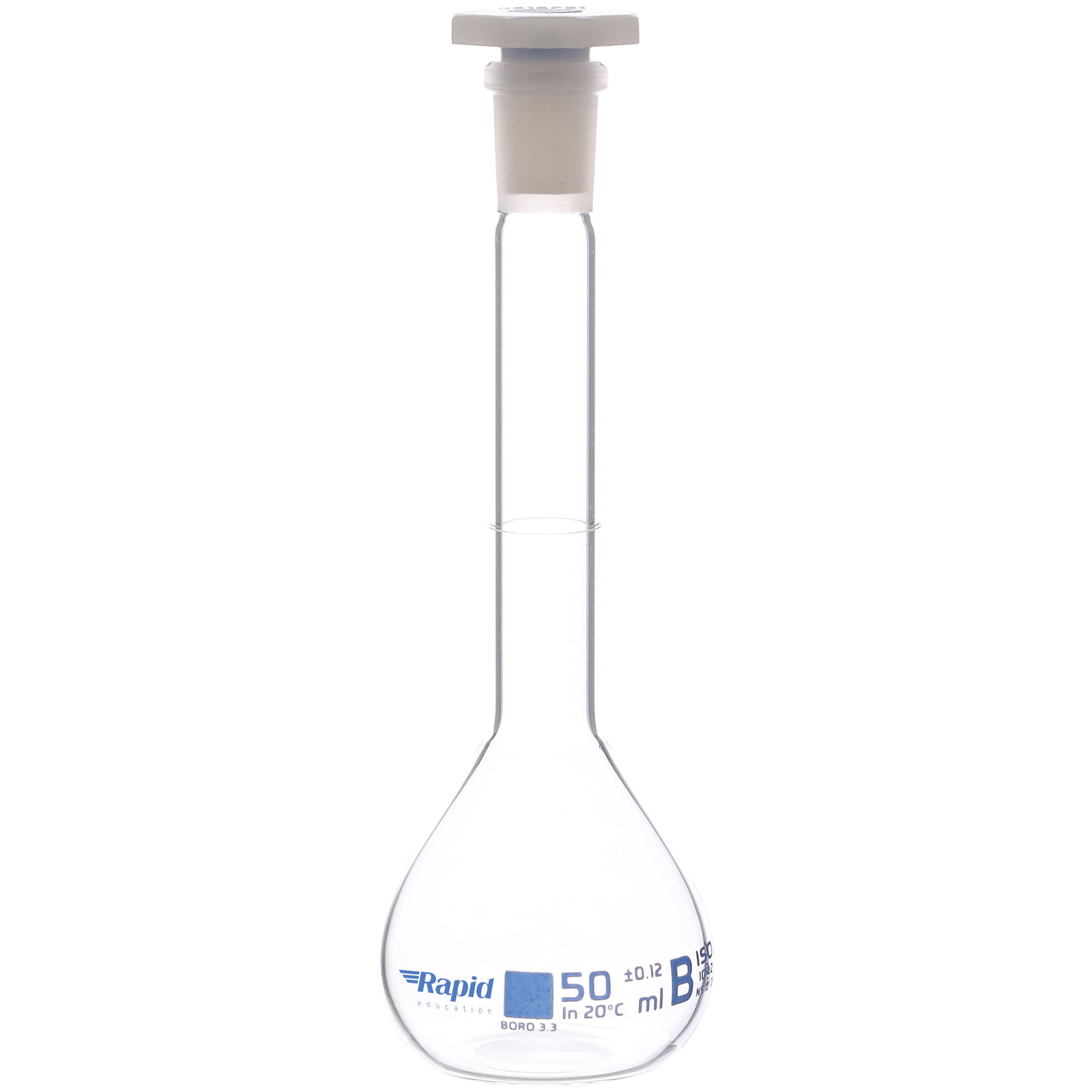 Rapid EGL0448D Volumetric Flask with PE Stopper, Class-B, 50 ml pack of 2