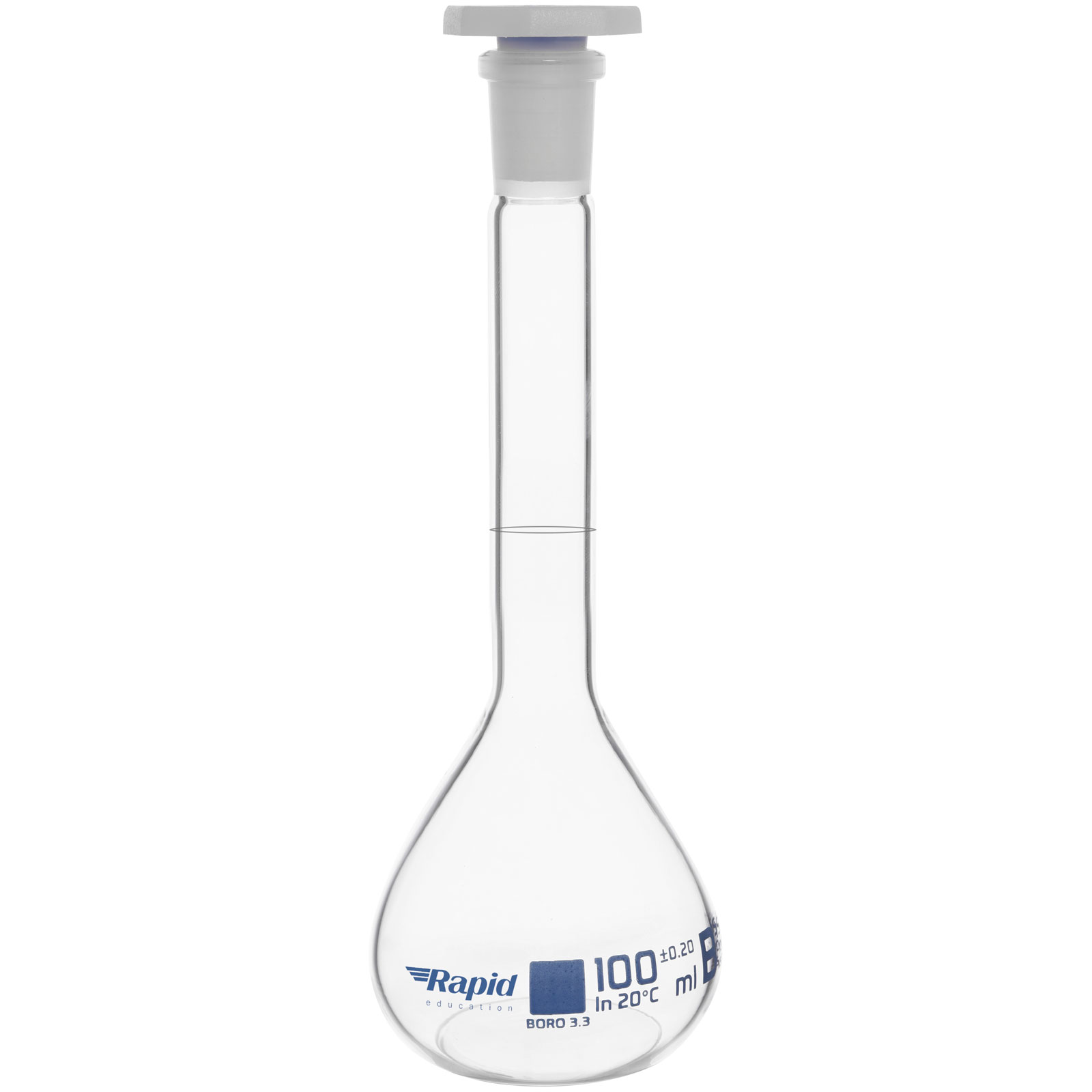 Rapid EGL0448E Volumetric Flask with PE Stopper, Class-B, 100 ml pack of 2