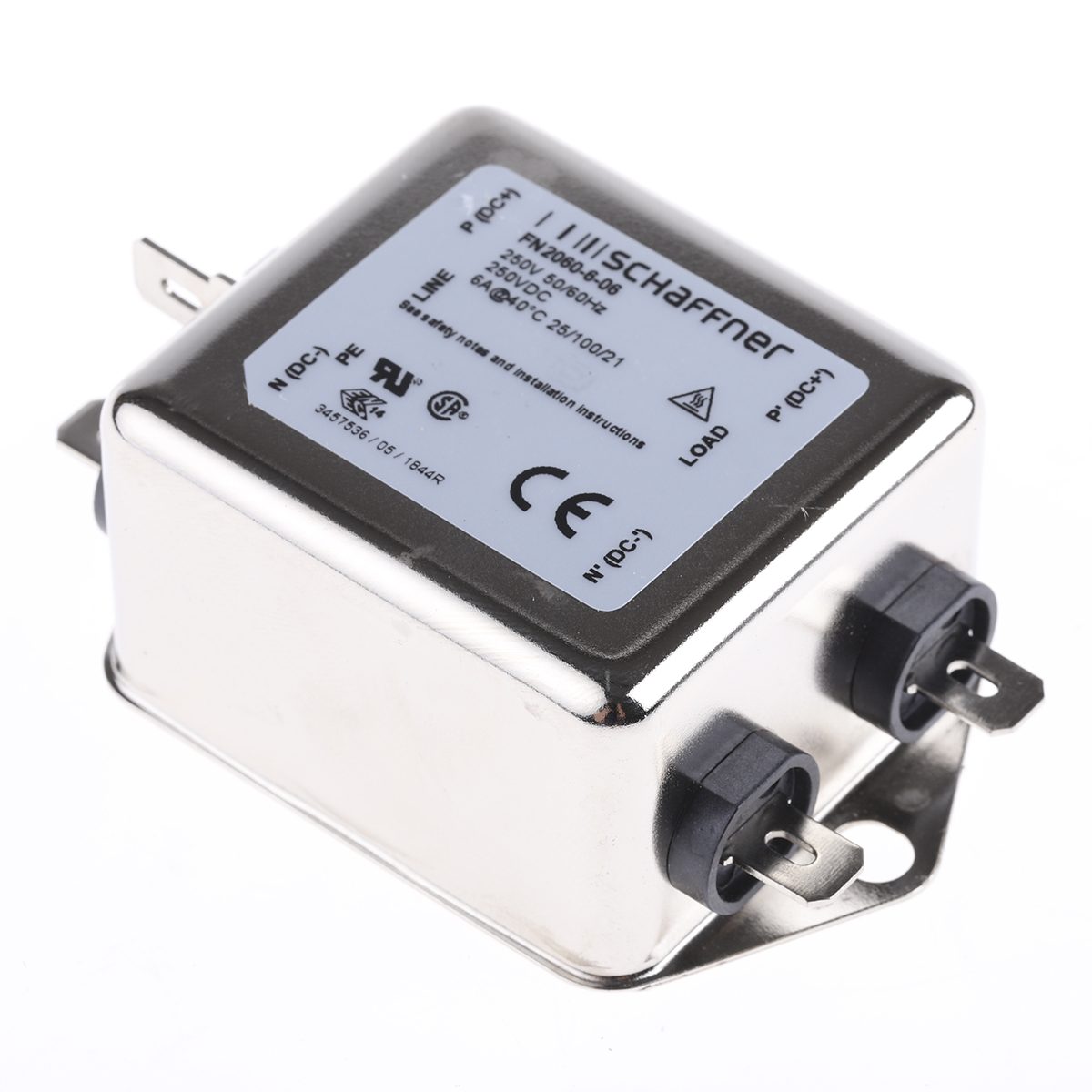 10. Filtr EMI 6A 1-fazowy 1MΩ 250 V AC/DC 400Hz 970 μH Schaffner Montaż w obudowie 108.23 x50